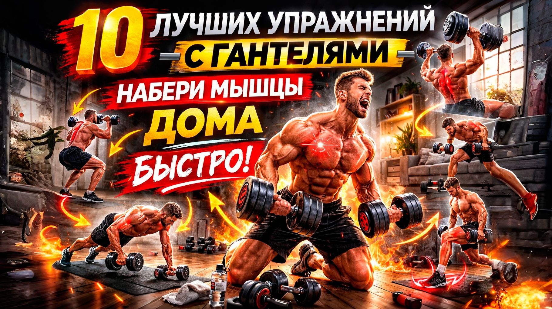 🔥 10 ЛУЧШИХ УПРАЖНЕНИЙ С ГАНТЕЛЯМИ — Набери Мышцы ДОМА БЫСТРО!