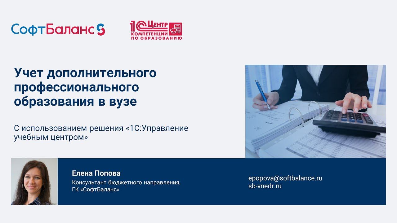 ГК "СофтБаланс" https://sb-vnedr.ru/ Учет дополнительного профессионального образования (ДПО) в вузе с использованием решения "1С:Управление учебным центром" Внедрение 1С Университет https://sb-vnedr.ru/programm/1c-obrazovat/1c-universitet-prof/ Внедренные проекты в сфере образования https://sb-vnedr.ru/vnedrenie-1c/obrazovanie/ https://youtu.be/cv-QyLeXCkg