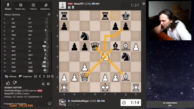 Друзья, всем привет. Партия со стрима, представляю вашему вниманию. Шахматы. Блиц 3+0 на chess.com. Если интересно, - подписывайтесь на канал, ставьте лайки, оставляйте комментарии. Поддержка через: DonationAlerts: https://www.donationalerts.com/r/onedebutplayer Бусти: https://boosty.to/onedebutplayer/donate Donatepay: https://new.donatepay.ru/@1272445