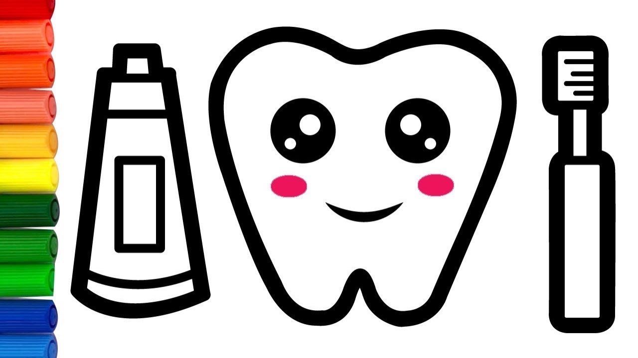 Как нарисовать зуб и зубную пасту. Рисунок раскраска