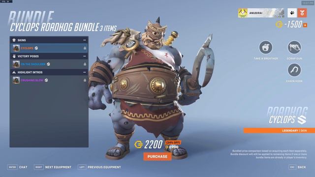 Minotaur Rein Bundle - 1,900 - Minotaur Skin - Minotaur Spray Medusa Widowmaker Bundle - 2.200 - Medusa Skin - Death Stare Highlight - Petrified Hammond Souvenir Cyclops Roadhog Bundle - 2,200 - Cyclops Skin - On The Shoulder Victory Pose - Crushing Blow Highlight Hermes Lucio Bundle - 2,000 - Hermes Skin - Winged Sandals Charm