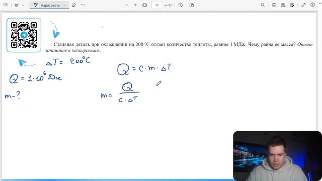 Стальная деталь при охлаждении на 200 °C отдает количество теплоты, равное 1 МДж. Чему равна её - №