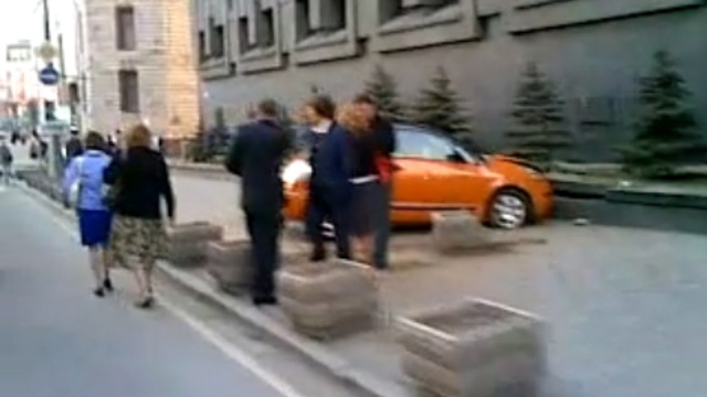 Блондинка врезалась в здание ФСБ РФ