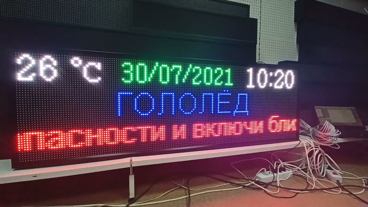 Табло погодных условий: дата (ДД:ММ:ГГГГ), время (ЧЧ:ММ); t [88°C] Производство LEDТехнология Тюмень