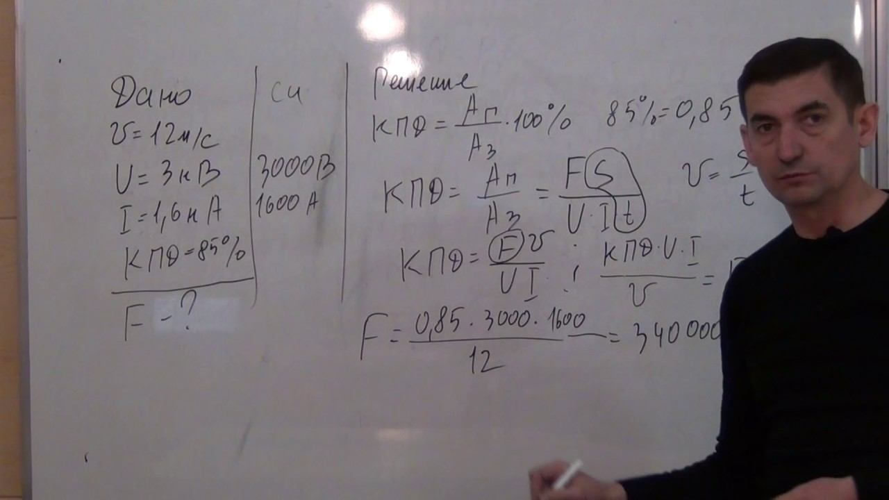 Поддержать проект Карта Сбер: 2202208836676529 (Сергей Анатольевич П.) (реквизиты актуальны до ноября 2035 г) Пополнив карту некоторой суммой денег вы покажете значимость, ценность проекта для вас, дадите толчок для создания новых роликов, а так же поможете автору с оплатой хостинга (места где хранится сайт) и продления домена fizika23.ru. Хостинг - 22 руб в сутки, домен - 900 руб - раз в год. Вашими перечислениями вы так же поддерживаете сайт для уроков физики 7-11.рф на котором находится достаточно большая подборка материала для уроков разных авторов Заранее спасибо Задача № 442 Найдите силу тяги, развиваемую при скорости 12 м/c электровозом, работающим при напряжении 3 кВ и потребляющим ток 1,6 кА. КПД двигателя электровоза равен 85%.