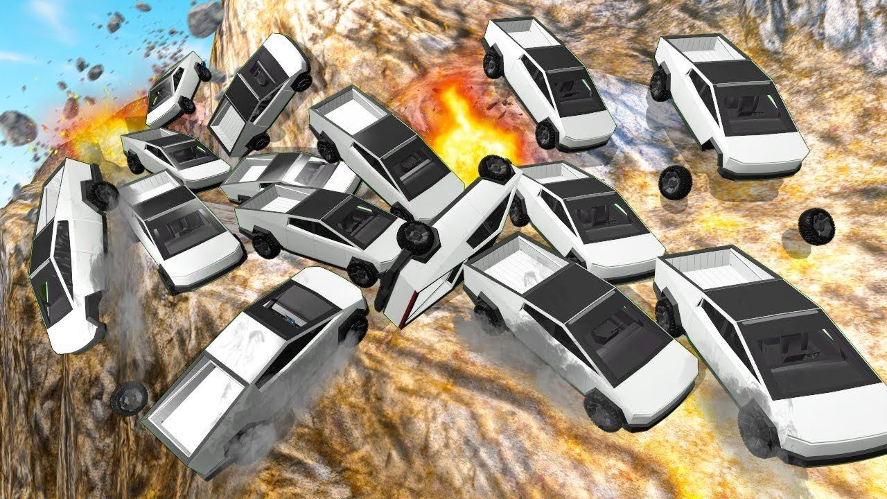 ЛАВИНА ИЗ ТЕСЛА КИБЕРТРАК! КУЧА МАШИН И БЕЗУМНАЯ ГОНКА НА ВЫЖИВАНИЕ! СПУСК СМЕРТИ В BeamNG.drive