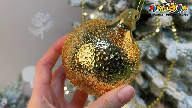 331609 Шар елочный Капли стеклянный золотистый 8см