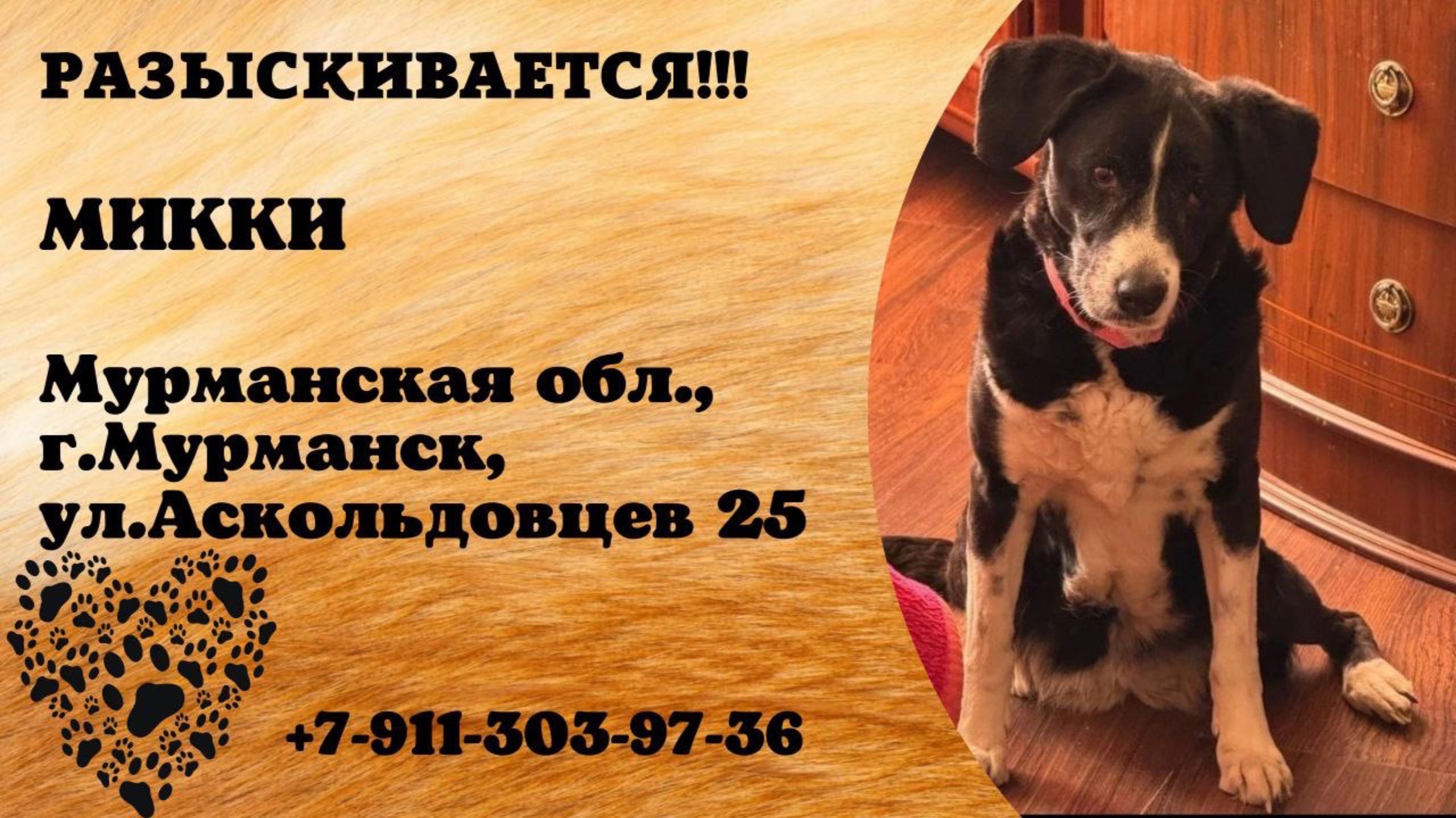Пропала собака! МИККИ. Мурманская обл., г.Мурманск.
