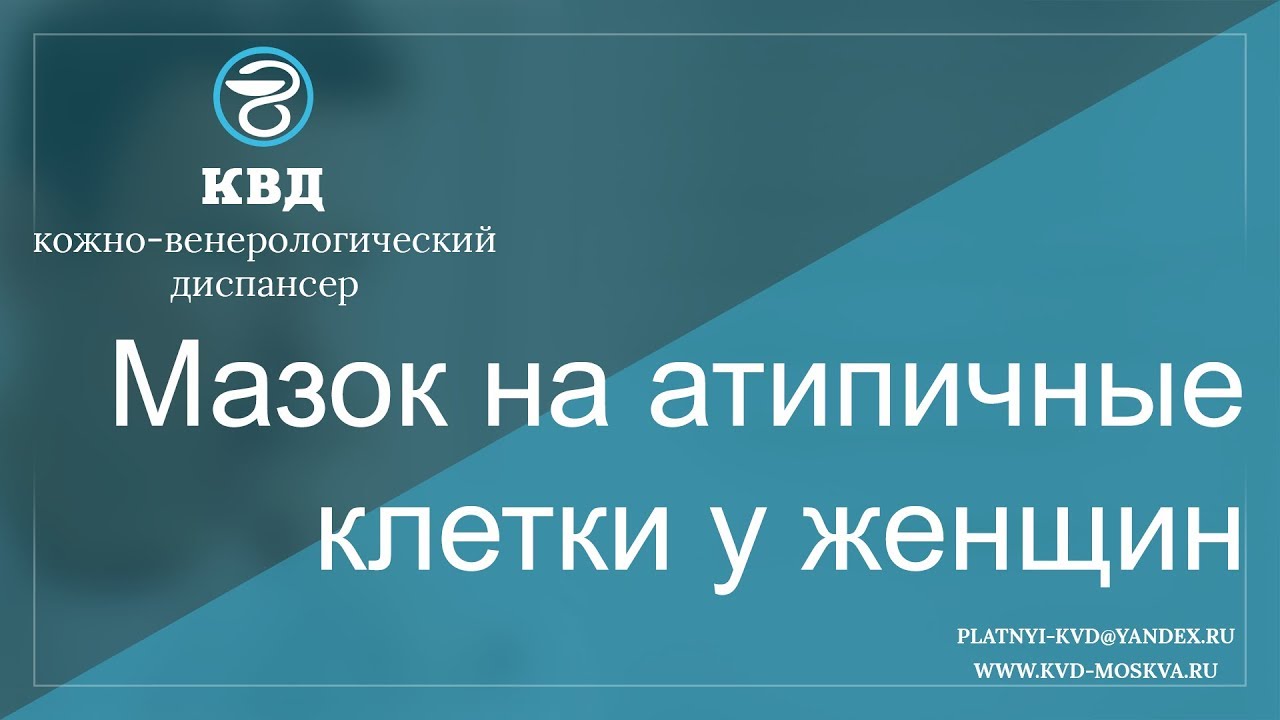 Мазок на атипичные клетки у женщин нужен для: - ранней диагностики рака шейки матки; - выявление фоновых и предраковых процессов (определение риска рака шейки матки); - оценки результатов проведенного лечения. Подробнее - https://kvd-moskva.ru/mazok-na-atipichnye-kletki/ Для подробной консультации по этому вопросу, обращайтесь в платный центр КВД-Москва. Наши телефоны: 8 (495) 642-30-37, 8 (495) 532-66-57 Наш e-mail: platnyi-kvd@yandex.ru Наш сайт: http://kvd-moskva.ru