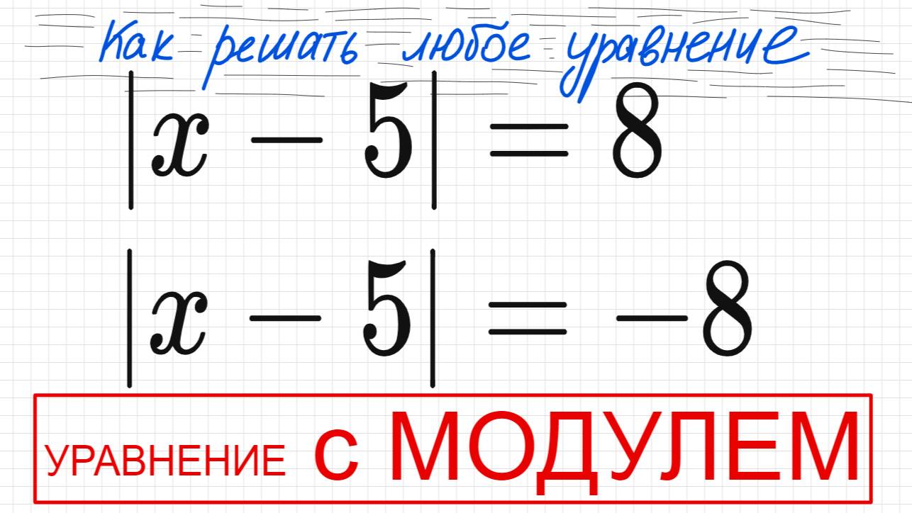 №1 Уравнение с модулем |х-5|=8; |х-5|=-8 Как решать уравнение с модулем Простое уравнение с модулем
