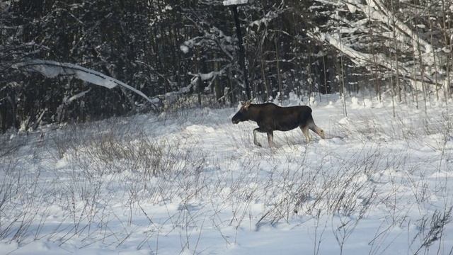 Ленобласть. Хвойное. 05.02.2026. Лось на даче пришел поеть веточек берёзы и ольхи. Ну надо же! Как у