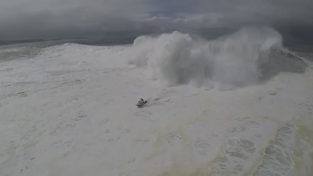 Гигантская волна накрыла серфера и спасательный гидроцикл