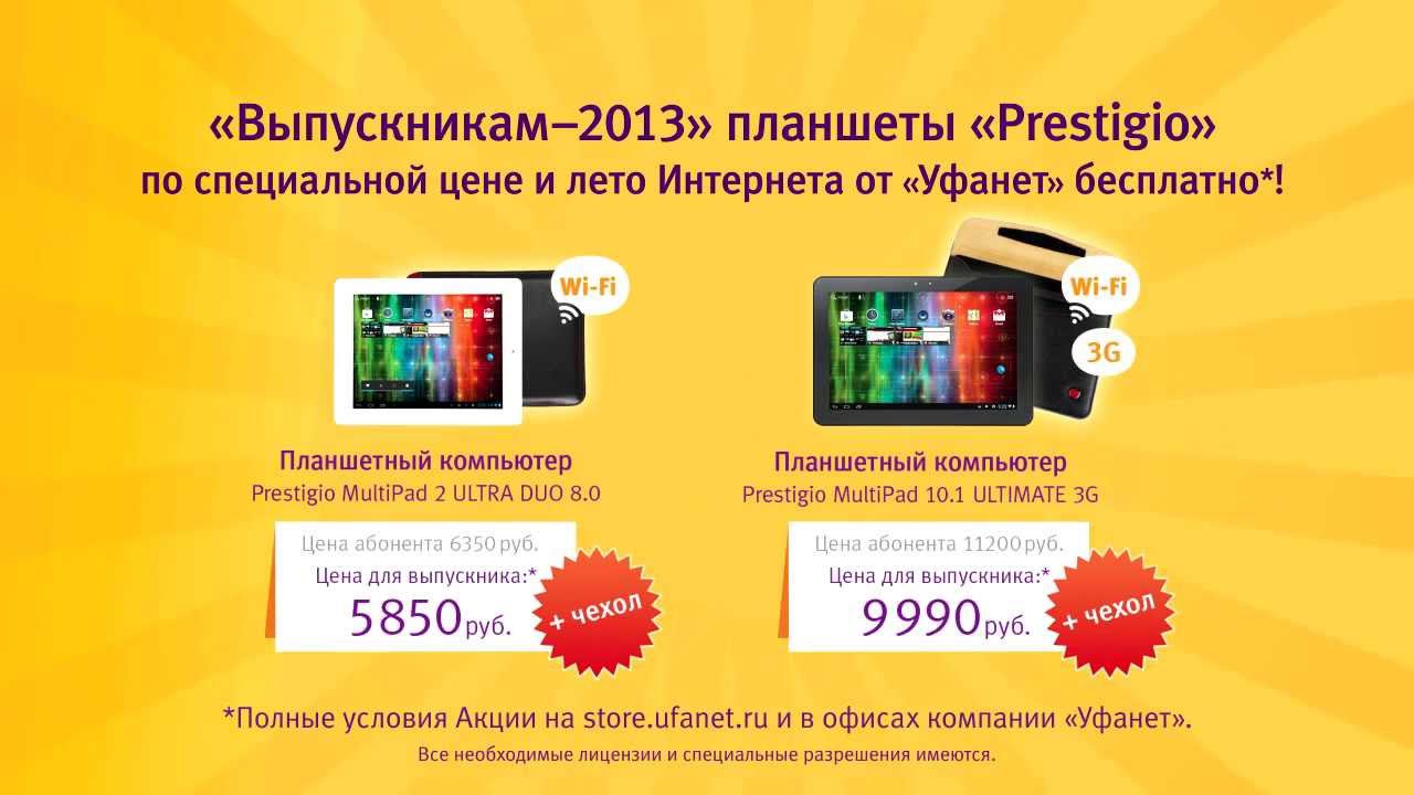 Акция продолжается!!! Планшеты "Prestigio" по специальной цене выпускникам + Интернет до 1 сентября - бесплатно! http://store.ufanet.ru/news/cat/action/post/bell/