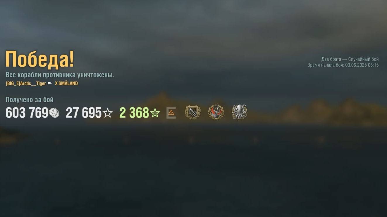 Эсминец Småland. Игрок: Arctic__Tiger (NA). Карта: Два брата - Случайный бой. Урон: 154к. Småland - Эсминец Европы 10 уровня.