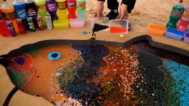 Как сделать радужного карпа с Orbeez, Big Coca Cola, Fanta, 7up, Mtn Dew, Chupa Chups и Mentos