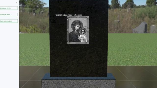 Пример оформления обратной стороны стелы гравировками и текстом в конструкторе памятников GranitGO