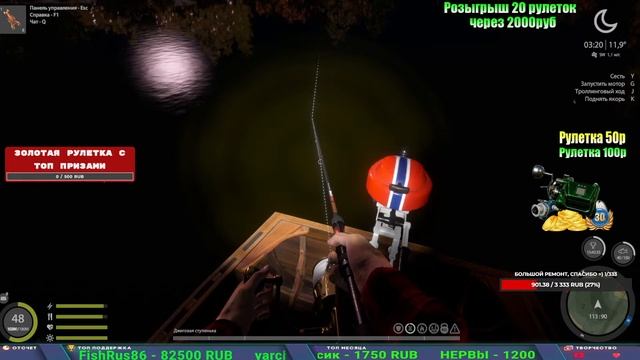 Поддержка донатом https://new.donatepay.ru/@1032463 Альтернативный донат https://www.donationalerts.com/r/kalyamba11 5536913964533059 карта Тинькоф Если стрим лагает,смотри стрим на трово https://trovo.live/s/Kalyamba_na_Ribalke Мой ВК - https://vk.com/kalyantv НИК в игре kalyan11 НАШ ДИСКОРД СЕРВЕР https://discord.gg/3ZeEDGs5h6 Заказ водоема на 1 час - 500р ( весь стрим 2500р ) Модерка на канале 1300р ( каждая следующая на 100р больше) ✅Призы в рулетке "ЗОЛОТАЯ" 500р ✔ ЗОЛОТО ✔ ПРЕМ ✔ КАТУШКИ РАПТОР 40, ВЕНГИ, ТАЙГА, СИЛЬВЕР 80, И другие ✔ ПАЛКИ ПИЛКЕРНАЯ, ДОНКА МОРСКИЕ, ✔ РОД ПОД, СТУЛЬЯ ✅Призы в рулетке СТАНДАРТ : 100р ✔ катушкИ РАПТОР 40, ВЕНГИ, ТАЙГА, СИЛЬВЕР 80, И другие ✔ катушки 60 для медного ( ЭВИИ, НАТОРЫ, ГОЛДА, и тд) ✔ ПИЛКЕРНОЕ УДИЛИЩЕ КОРОЛЕВА ОКЕАНА ✔ Морское Донное удилище ✔ прем ( 3, 7, 30 дней) ✔ золото ( 1, 3, 5, 10, 20 ,50) ✔ билет на море ( 1, 3, 5 дней) ✔ голд наживка и др. ✅Призы в рулетке "СТАРТОВАЯ" 50р ✔ катушка Венга ✔ катушка "silver80" ✔ катушка "БЕЛЫЙ КАЛИБР" ✔ катушка "Черный калибр" ✔ катушка "Протон" ✔ катушка "Нарга 6000" ✔ Набор Фидерист и спинингист ✔ Карповик Фортуна ✔ фидерные удилища ✔ прем, золото, алкашка, наживки и тд P.s Рулетка это не казино, а награда за поддержку стримера. Вечный ТОП ПОДДЕРЖКИ (10.06.2025) 1. Леха сварной 214 572 2. Dimon_pokemonchik 127 034 3. Skreb79 103 061 4. Interceptor 96 230 5. FishRus86 82 500