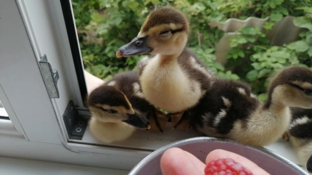 Маленькие утята на окошке хотят кушать малину,милашки утики путики