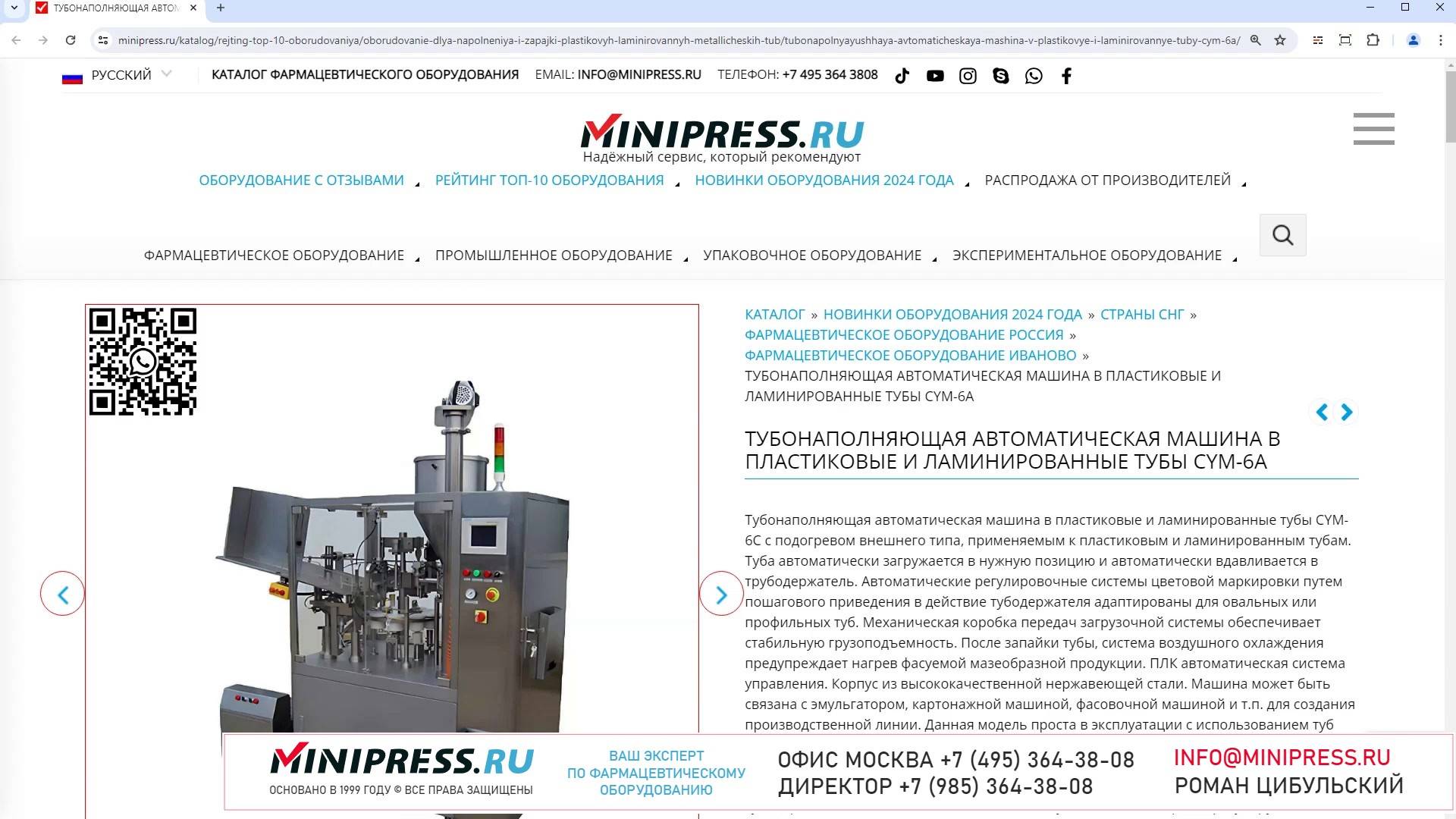 В каталоге компании MINIPRESS.RU большой выбор СУБЛИМАЦИОННЫХ СУШЕК. Различные модели распылительных сушилок, лиофильных сушек, сублимационного оборудования различной производительности. Новые технологии лиофилизации, и сублимации пищевых продуктов, лекарственных препаратов и суспензий. Компания Романа Цибульского MINIPRESS.RU занимается поставкой большого ассортимента фармацевтического оборудования из Китая, Кореи, Индии, Европы и других стран. Мы выполняем работы по поиску, подбору, закупке, доставке, и таможенной очистке оборудования с доставкой в любой город России и стран СНГ. Основатель и ведущий специалист компании - Роман Цибульский. Компания MINIPRESS.RU (зарегистрированный товарный знак) основана в 2000 году. Онлайн каталог оборудования MINIPRESS.RU ежедневно посещают несколько тысяч человек. Мы развиваем крупные каналы в социальных сетях, посвященные тематике фармацевтического оборудования. Вы можете посмотреть видео ролики об оборудовании, которым мы занимаемся. Фактически у нас самый большой в России многоязычный каталог фармацевтического оборудования с фотографиями, описаниями, и что более важно с ценами и видео демонстрацией оборудования в работе. Подбор оборудования и консультации ведет сам владелец компании - Роман Цибульский. Компания имеет огромный опыт в работе с различным оборудованием, технологиями. Помогаем клиентам выбрать модель фармацевтического оборудования, которое сможет решить поставленную задачу. Наши специалисты помогают рекомендациями в решении проблем по эксплуатации оборудования. Наша компания имеет офис в г.Шанхай и несколько менеджеров, которые помогают в работе с китайскими поставщиками. Мы долго сотрудничаем и дружим с этими специалистами. Китайские поставщики ценят нас как постоянных партнеров. Роман Цибульский Директор компании Минипресс Поставка фармацевтического оборудования в Россию Пишите: info@minipress.ru Gmail: boss.minipress@gmail.com Офис в Москве +7(495)364-38-08 Мобильный +7(985)364-38-08 (WhatsApp) Каталог оборудования https://www.Minipress.ru/katalog/ МИНИПРЕСС.РУ В СОЦИАЛЬНЫХ СЕТЯХ FB https://facebook.com/roman.tsibulsky YOUTUBE https://www.youtube.com/@farmacevticheskoe_oborudovanie INSTAGRAM https://www.instagram.com/farmacevticheskoe_oborudovanie/ #сортировка #бады #измельчение #печать #технология #мойка #завод #капсулирование #рентабельность #укупорка