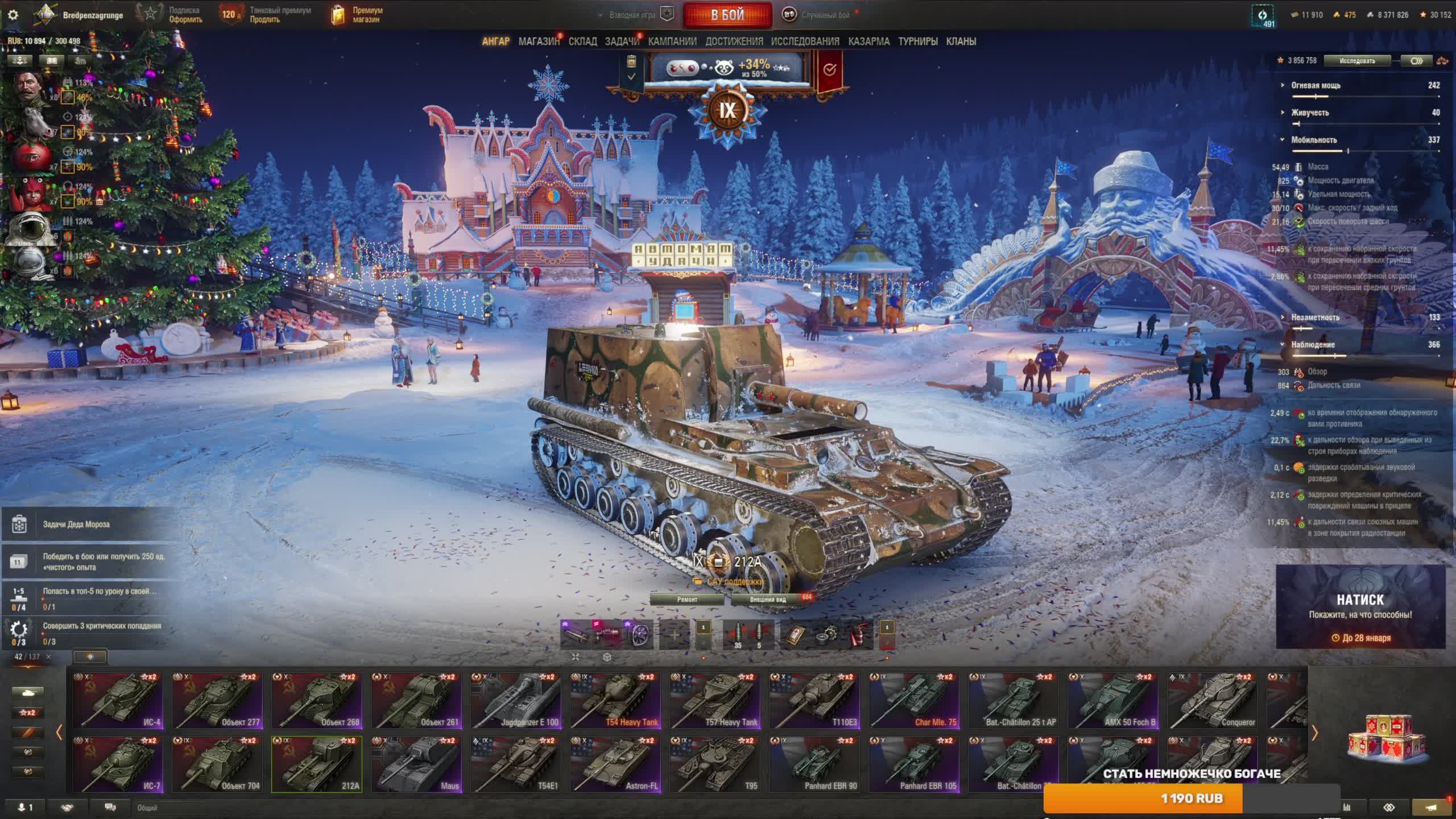 Мир танков Ёлка мандарины енот и отмосфера праздника в режиме Натиск