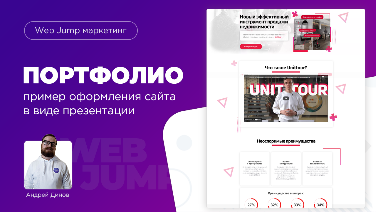 ✅ Как правильно сделать портфолио веб дизайнера и веб разработчика? Конечно же, с помощью видеопрезентации сайта. Ведь 30-60 секунд скажут о вашем проекте больше, чем тонна текстов и скриншотов. Еще один пример упаковки сайта. О САЙТЕ: Запуск: 10 дней Цена: 40000 р. Трафик: Контекстная реклама Конверсия: 6 % Создание сайта: Веб дизайн в Photoshop, вёрстка в WordPress Elementor ☝ Важно позиционировать себя как высококлассного веб-дизайнера и разработчика сайтов, и поэтому, я рекомендую Вам всегда (ну или почти всегда) делать видеопрезентации для своих сайтов. Понятное дело, что такие презентации не нужны вашему ЗАКАЗЧИКУ, но они необходимы ВАМ, чтобы придать больший вес вашим выполненным проектам и в комплексе показывать свою экспертность. ? И кстати, со своими учениками я подробно разбираю процесс подготовки таких видео-презентаций и обучаю их этому. Более того в рамках обучения они получают 5 платных премиум-шаблонов (платные они были для меня, но я, конечно, отдаю их в качестве подарка?), с помощью которых можно также круто упаковать аж 5 сайтов из своего портфолио. ?? Сайт школы: https://web-jump.ru/ ? А тут много полезного: https://vk.com/web.jump #webjump #портфолио #презентациясайта