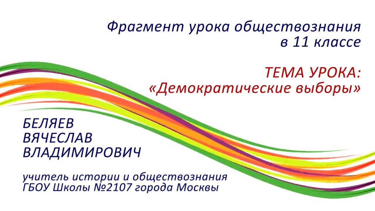 Фрагмент урока обществознания в 11 классе.Тема: Демократические выборы. Беляев Вячеслав Владимирович
