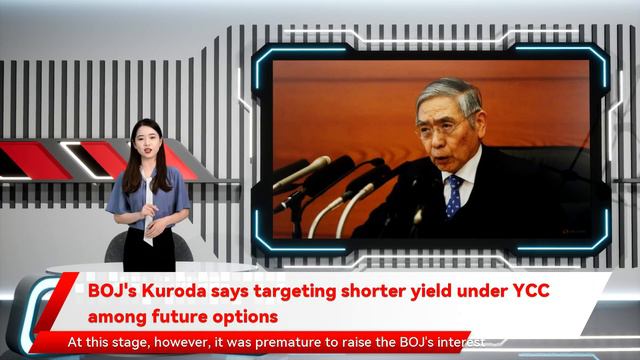 The Bank of Japan could consider targeting a shorter maturity than the current 10-year bond yield as an option when the time comes to exit its ultra-easy policy Kuroda told parliament. Under a policy dubbed yield curve control BOJ's Kuroda says targeting shorter yield under YCC among future options TOKYO Haruhiko Kuroda it was premature to raise the BOJ's interest rate targets or take steps to steepen the yield curve the BOJ guides short-term rates at -0.1per cent and the 10-year bond yield around 0per cent.