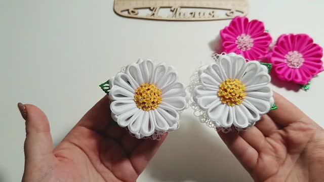 МК бантиков из ролика 54🤍🫶 мастер класс бантиков из ленты 2,5 см ромашки