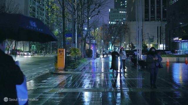 뿌연 안개비 내리는 여의도 퇴근길 밤 산책, 서울 여행 워커, 서울 트래블 워커.