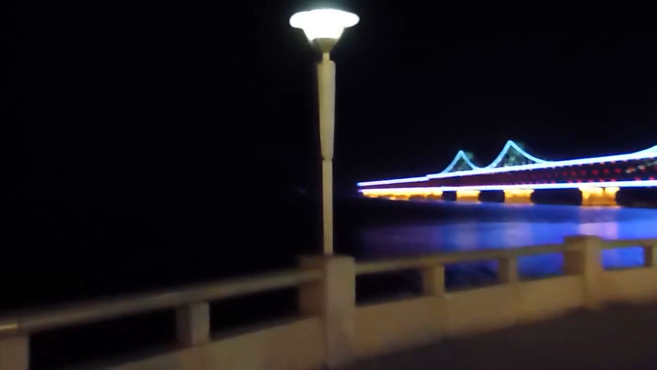 Это мост через реку Ялу, которая разделяет китайский город Даньдун и Северную Корею. Как можно заметить, китайская сторона хорошо освещена и украшена гирляндами, а на северо-корейской не горит ни одного огонька и сплошная тьма... #китай #севернаякорея #граница #жесть