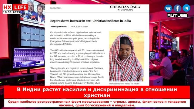 НХ-LIFE: В Индии растет насилие и дискриминация в отношении христиан Среди наиболее распространенных форм преследования – угрозы, аресты, физическое и гендерное насилие, срыв богослужений и вандализм. Согласно отчету Комиссии по религиозной свободе Евангелического братства Индии, в 2024 году в стране было зафиксировано 640 случаев насилия и дискриминации в отношении христиан, что является значительным ростом по сравнению с предыдущими годами (601 случай в 2023 году и 147 случаев в 2014 году), пишет Сhristiandaily. «Систематическое и организованное преследование христиан достигло критического уровня в нескольких штатах, – заявил генеральный секретарь братства Виджаеш Лал. – Больше всего нас беспокоит то, что в среднем четыре-пять церквей или пасторов подвергаются нападениям каждый день, причем число нападений почти удваивается каждое воскресенье, когда верующие приходят на богослужение». В отчете «Вера под угрозой: изучение насилия и дискриминации в отношении христиан в Индии (2024)» указывается, что наибольшее число инцидентов произошло в штатах Уттар-Прадеш (188), Чхаттисгарх (150), Раджастхан (40), Пенджаб (38) и Харьяна (34). Среди наиболее распространенных форм преследования – угрозы, аресты, физическое и гендерное насилие, срыв богослужений и вандализм. В отчете приводят ряд случаев преследования христиан в разных штатах. 12 февраля 2024 года в округе Сукма штата Чхаттисгарх жители деревни угрожали семье Аайту Подиями и требовали отречься от христианской веры дважды в течение недели. Затем совет деревни вызвал их и выдвинул ультиматум: отказаться от христианства или столкнуться с последствиями. Когда христиане отказались, жители деревни жестоко избили их, в результате чего отец Аайту получил серьезные травмы, потребовавшие госпитализации. Нападение вынудило семью покинуть свою деревню и переселиться в другое место в качестве чернорабочих. 4 мая в Бастаре, Чхаттисгарх, толпа убила 22-летнего Косу Каваси на глазах у его жены за отказ отречься от христианской веры. Несколькими неделями ранее он сообщал в полицию об угрозах убийством, но полиция проигнорировала его. Нападение началось после того, как жители деревни не допустили христианские семьи на племенной праздник. Около 20 человек, включая дядю и кузена Каваси, ворвались в его дом, требуя, чтобы он отказался от своей веры. Когда он отказался, они избили его деревянными палками, затем нанесли ему удары ножом и топором. Его жена сбежала после нападения. В тот же день еще пять христианских семей бежали, спасая свои жизни. В Чхаттисгархе экстремистские группировки преследовали христиан из племен, применяя физическое насилие, устраивая социальные бойкоты и лишая их основных ресурсов и права на захоронение, чтобы заставить их отказаться от своей веры. Отмечается также злоупотребление законами против обращения в другую веру: эти законы используются для ограничения свободы вероисповедания христиан. «Эти законы, юридически известные как законы о свободе вероисповедания, использовались не по назначению, чтобы ограничить свободу вероисповедания христианского меньшинства», – заявил лидер из Уттар-Прадеша изданию Morning Star News на условиях анонимности. Критическое изменение в законодательстве теперь позволяет «любому человеку» – а не только жертвам или их родственникам – подавать жалобы на предпо