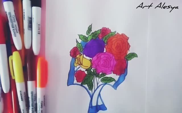 Рисую простой красивый букет цветов!🌹