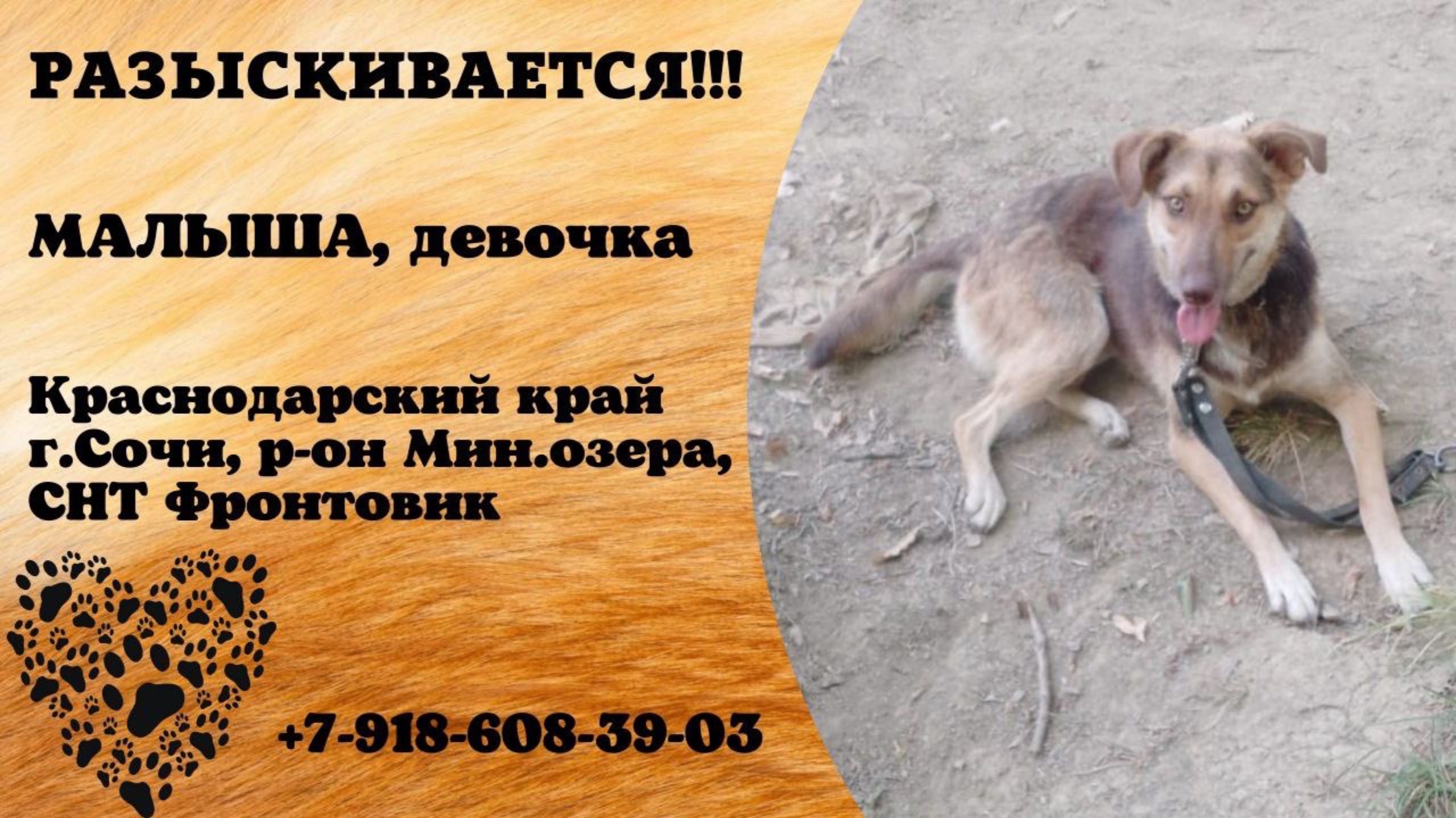 Пропала собака! МАЛЫША, девочка. Краснодарский край, г.Сочи.