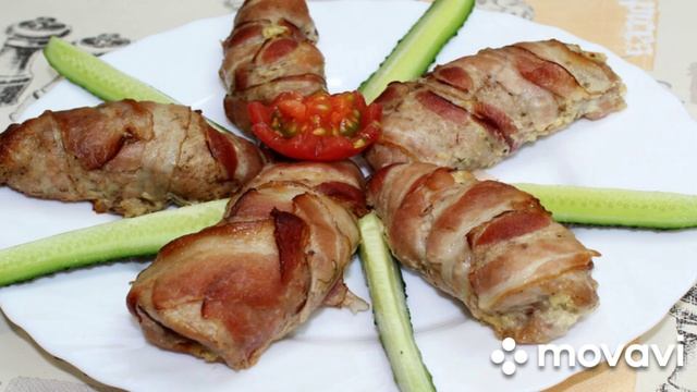 Рулетики из бекона с морковкой и сырной начинкой