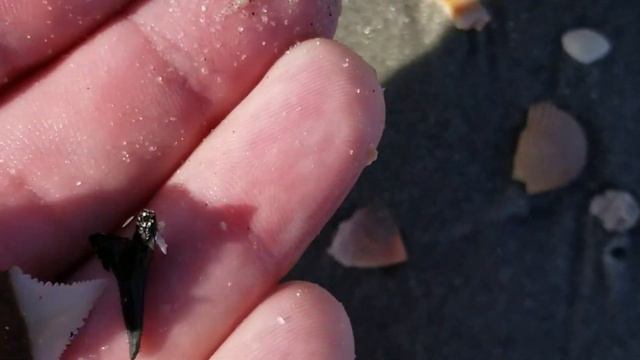 Shark tooth hunting and shelling at the same time. Found a baby Carolina Cream great white tooth!