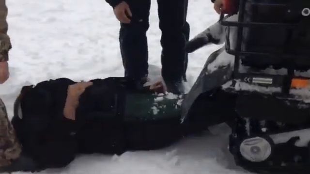 Удержал снегоход руками