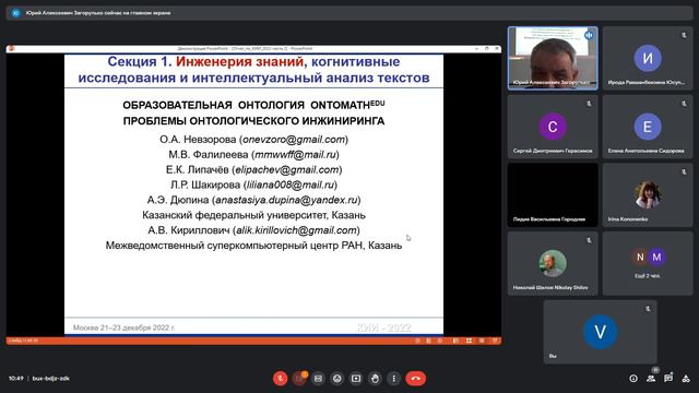Докладчик: Загорулько Юрий Алексеевич (ИСИ СО РАН, Новосибирск) Тема: XX НАЦИОНАЛЬНАЯ КОНФЕРЕНЦИЯ ПО ИСКУССТВЕННОМУ ИНТЕЛЛЕКТУ С МЕЖДУНАРОДНЫМ УЧАСТИЕМ (КИИ-2022), 21–23 декабря 2022 г., г. Москва (ЧАСТЬ II)