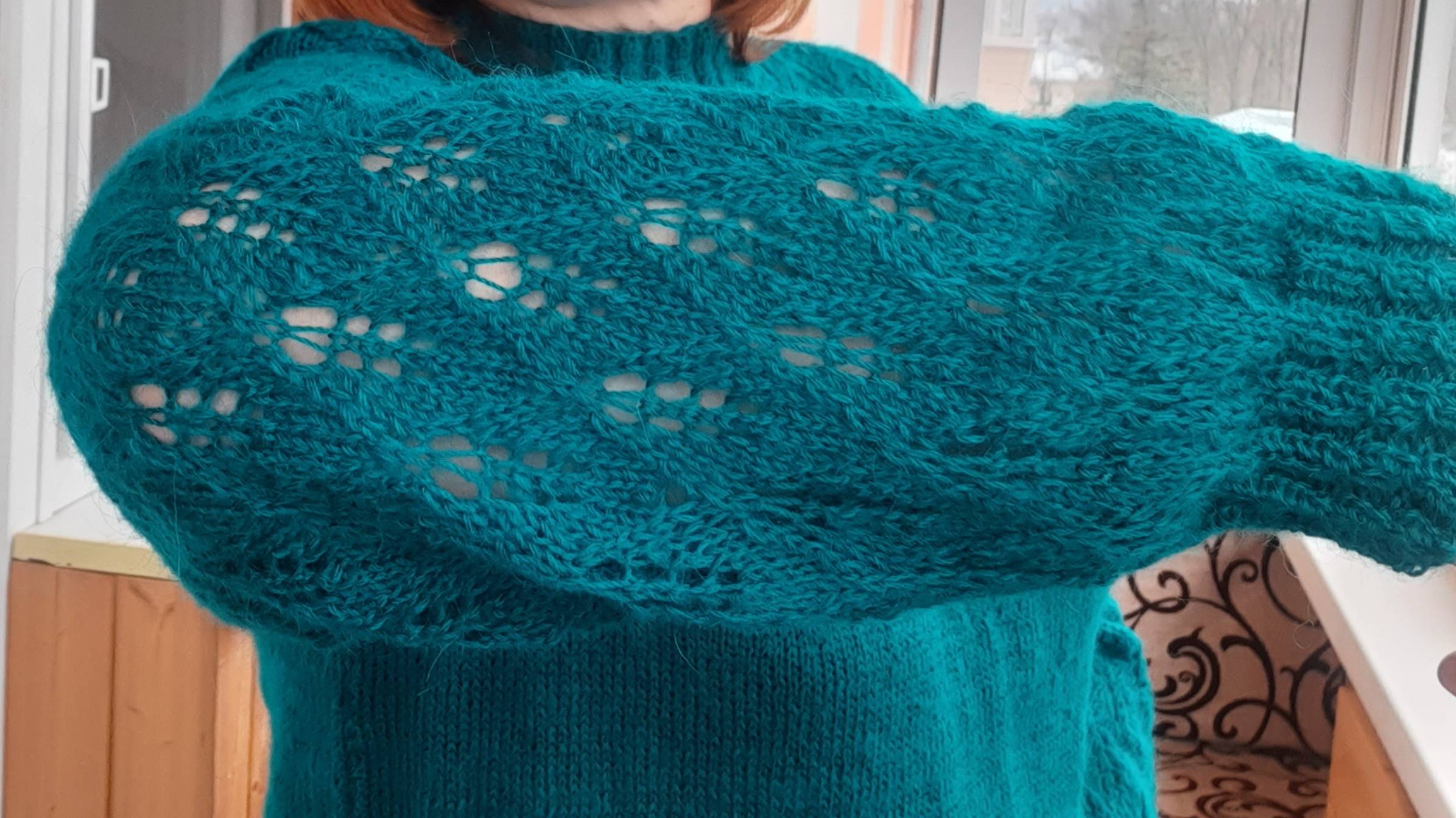 Выгуляла вязанные вещи, вяжу рукав джемпера