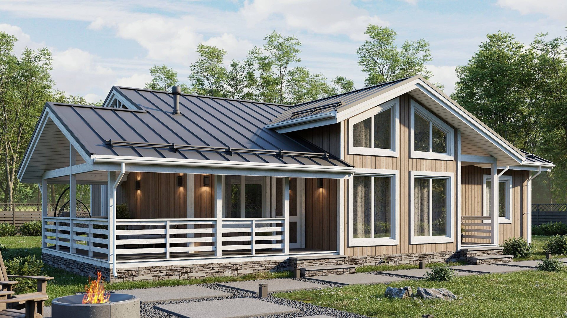 Проект одноэтажного дома Абрау 9.6 х 13.5