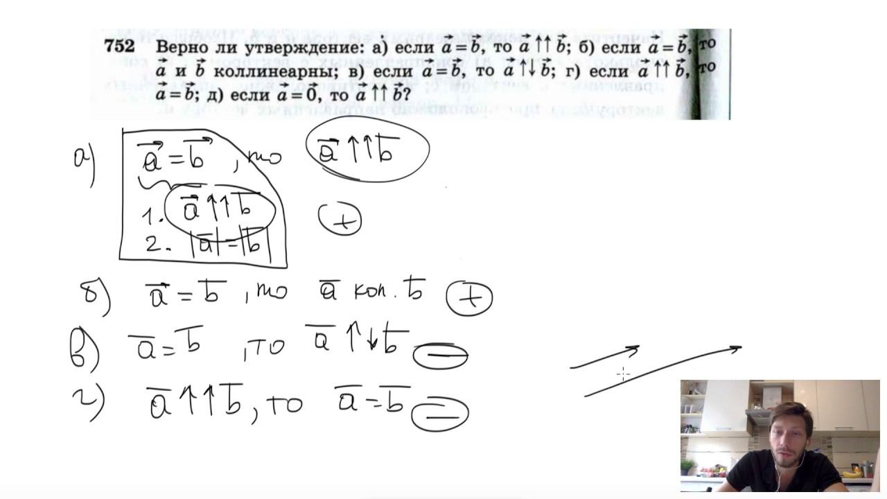 №752. Верно ли утверждение: а) если вектор a = вектору b, то a⇈b; Мой второй канал для подготовки к ЕГЭ и ОГЭ - https://www.youtube.com/ЕвгенийСумин Инстаграм - https://www.instagram.com/EGE_OGE.math VK - https://vk.com/evgeniysumin FB - https://www.facebook.com/EvgeniySumin