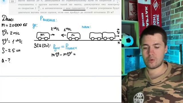 Вагон массой 20 т, движущийся по горизонтальному пути со скоростью 2 м_с, сталкивается с - №20307