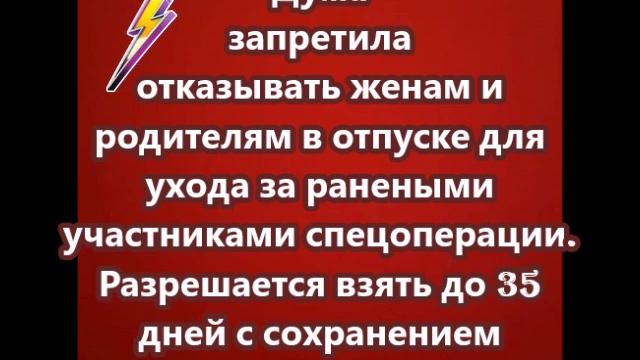 Дума запретила отказывать женам и родителям в отпуске для ухода за ранеными участниками спецоперации