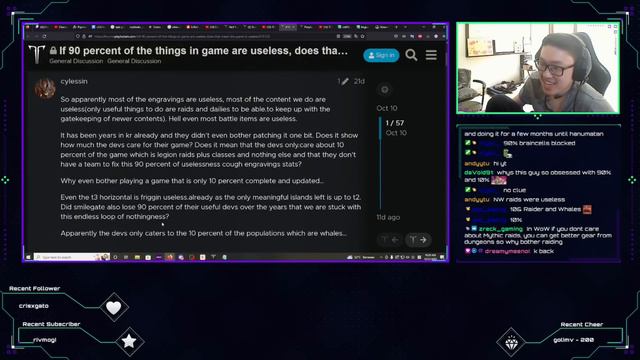 Lost Ark Forum If 90 percent of the things in game are useless, does that mean the game is useless? Link: https://forums.playlostark.com/t/if-90-percent-of-the-things-in-game-are-useless-does-that-mean-the-game-is-useless/473125 Join my discord community: https://discord.gg/ButwqQEcW7 Video was taken directly from my stream. https://www.twitch.tv/kanimaxiv Thank you for watching. Stay tuned and subscribe to check out new videos. Let me know in the comments section what you want to see next. Outro: Infraction - Almost Evil https://www.youtube.com/watch?v=UeAK6P7Gl7w