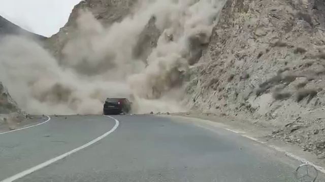 В Дагестане машина чуть не попала под камнепад