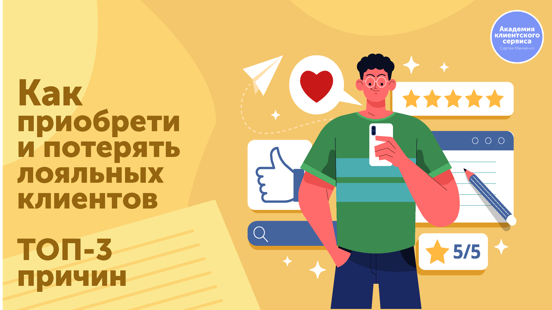 #лояльность #клиентскийсервис #сергеймамченко Сергей Мамченко - эксперт-практик и консультант по клиентскому сервису и развитию сбытовых структур (продажи, обслуживание). Спикер. Бизнес-тренер. ? ПОДПИШИСЬ И ПОСТАВЬ ЛАЙК! Официальный сайт: https://sergeymamchenko.com Телефон: +7 963 638 6446 (WhatsApp, Telegram) E-mail: mail@sergeymamchenko.com Facebook: https://www.facebook.com/sergey.mamchenko ВКонтакте: https://vk.com/mamchenkosl Instagram: https://www.instagram.com/mamchenkolive Telegram: https://t.me/SergeyMamchenkoLIVE ? Поддержи канал! https://donate.stream/ya410011430318510 #бизнес #сервис #клиентскийсервис #клиентскийопыт #онлайнобучение #обучение #сергеймамченко #бизнестренер #бизнесспикер #эксперт #экспертпрактик #продажи #работасклиентами #клиенты #предпринимательство #лояльность #лояльностьклиента