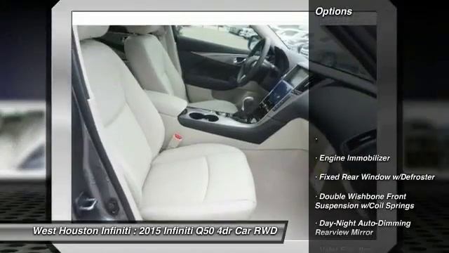 2015 Infiniti Q50 Premium http://www.westhoustoninfiniti.com For more information on this vehicle and our full inventory, call us at 281-589-8900 West Houston Infiniti 12200 Katy Fwy Houston TX 77079 We are pleased to present this excellent 2015 Infiniti Q50 with 0 miles. Its beautiful Graphite Shadow exterior is nicely complimented by a clean Stone interior. This Q50 comes equipped with the following options, , Engine Immobilizer, Fixed Rear Window w/Defroster, Double Wishbone Front Suspension w/Coil Springs, Day-Night Auto-Dimming Rearview Mirror, Valet Function, Leather/Aluminum Gear Shift Knob, 20 Gal. Fuel Tank, Remote Releases -Inc: Power Trunk/Hatch and Power Fuel, Manual Anti-Whiplash Adjustable Front Head Restraints and Manual Adjustable Rear Head Restraints, and much more. For a complete list, select the Options button below. Contact our friendly professional staff today for more information or to schedule a test drive.