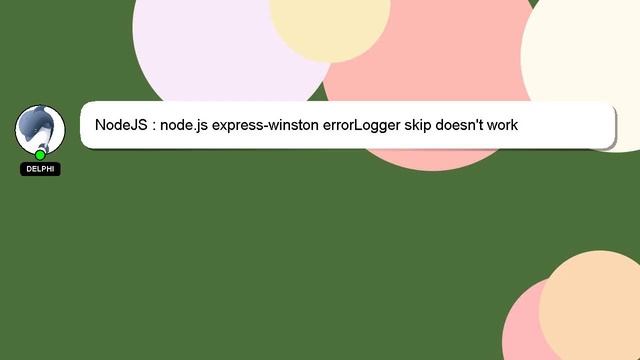 NodeJS : node.js express-winston errorLogger skip doesn't work To Access My Live Chat Page, On Google, Search for "hows tech developer connect" As promised, I have a secret feature that I want to reveal to you. This is a YouTube's feature which works on Desktop. First, Ensure that the video is playing before proceeding. Next, enter the letters 'awesome' on your keyboard. Your YouTube progress bar will transform into a flashing rainbow. A little intro about me, Howdy, my name's Delphi. Allow me to support you in answering your questions. NodeJS : node.js express-winston errorLogger skip doesn't work If you need more specific answers, please leave a comment or start a chat with me. Please feel free to share your answer or insights on the answer by leaving a comment below. Your answer will be recognized and appreciated, and I will 'heart' it to show my appreciation. NodeJS express-winston work node.js skip errorLogger doesn't :