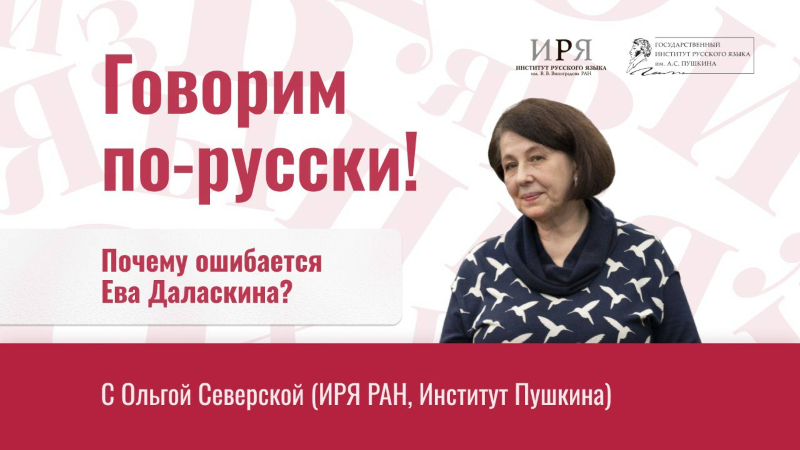 Ева Даласкина - собирательный персонаж, автор альтернативных версий текстов Тотального диктанта, составленных из допущенных ошибок. Почему ошибается Ева Даласкина, превращая грозовую шрапнель в Шанель? Разбираемся вместе с Ольгой Северской, к. филол. н., в.н.с. ИРЯ РАН, доцентом Института Пушкина. Еще больше интересных тем и новостей в нашем Телеграм-канале "Говорим по-русски! С Ольгой Северской и Ко": https://t.me/echoporusski. Присоединяйтесь и к нашему сообществу во "ВКонтакте": https://vk.com/echoporusski.