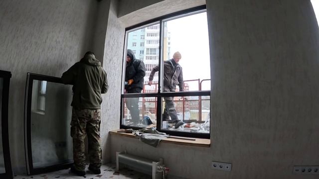 Монтаж ПВХ окна в фасадку с автовышки в быстром темпе