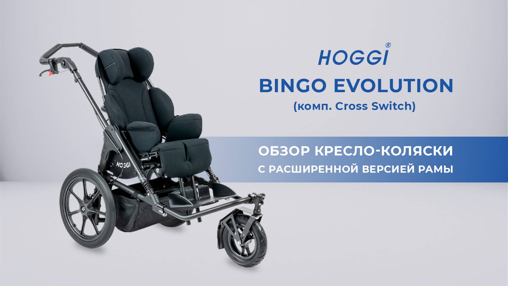 Прогулочная коляска HOGGI BINGO Evolution (компл Cross Switch) - предназначена для детей с нарушением опорно-двигательного аппарата, для больных ДЦП. Уникальность данной модели в расширенной версии рамы со встроенным быстросъемным механизмом, благодаря которому можно на выбор установить спереди одно или два колеса.
